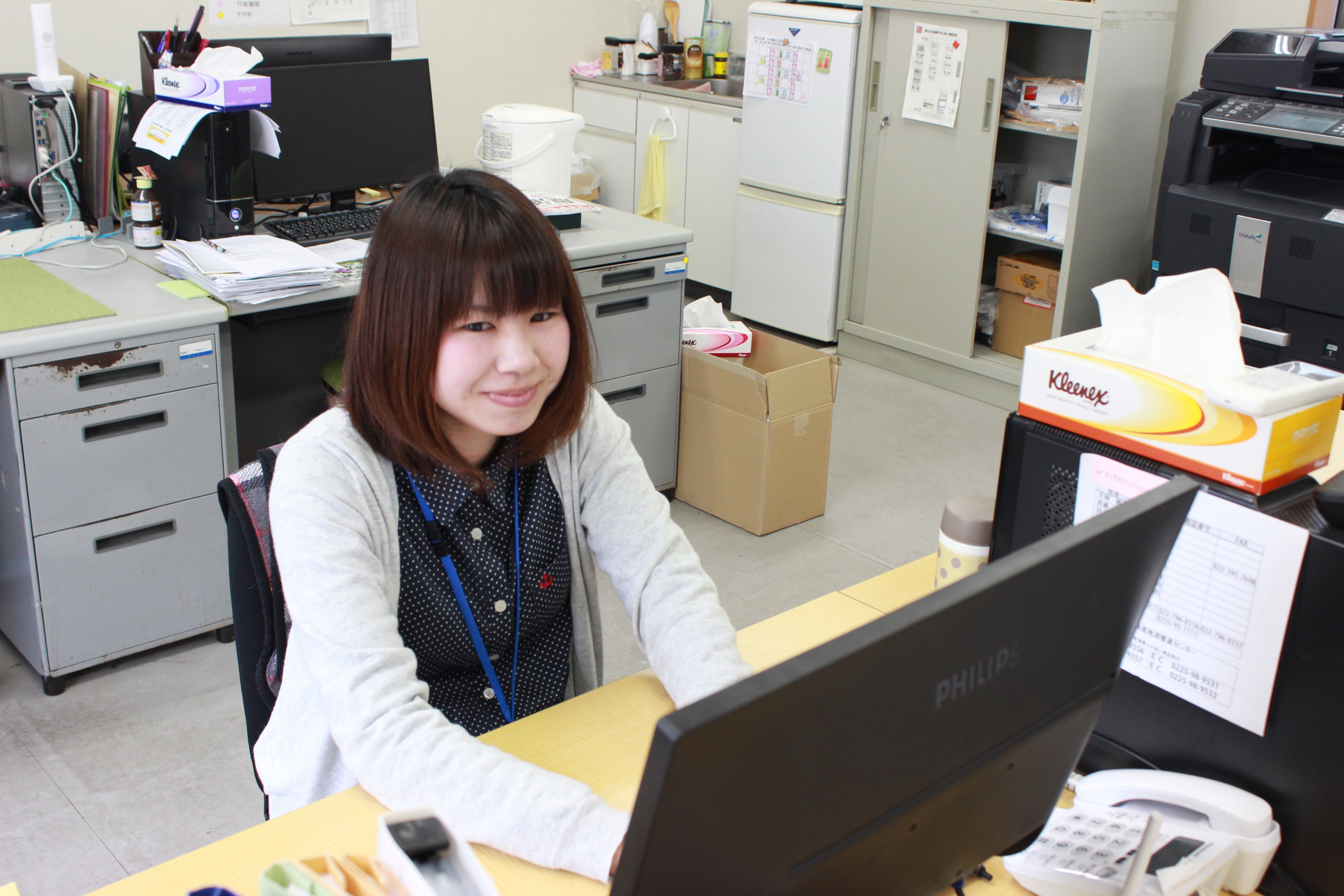 「事務員として事務所内のサポートおよび、ECサイト(石巻いっぴんマーケット)の受発注・商品管理を行っています。」