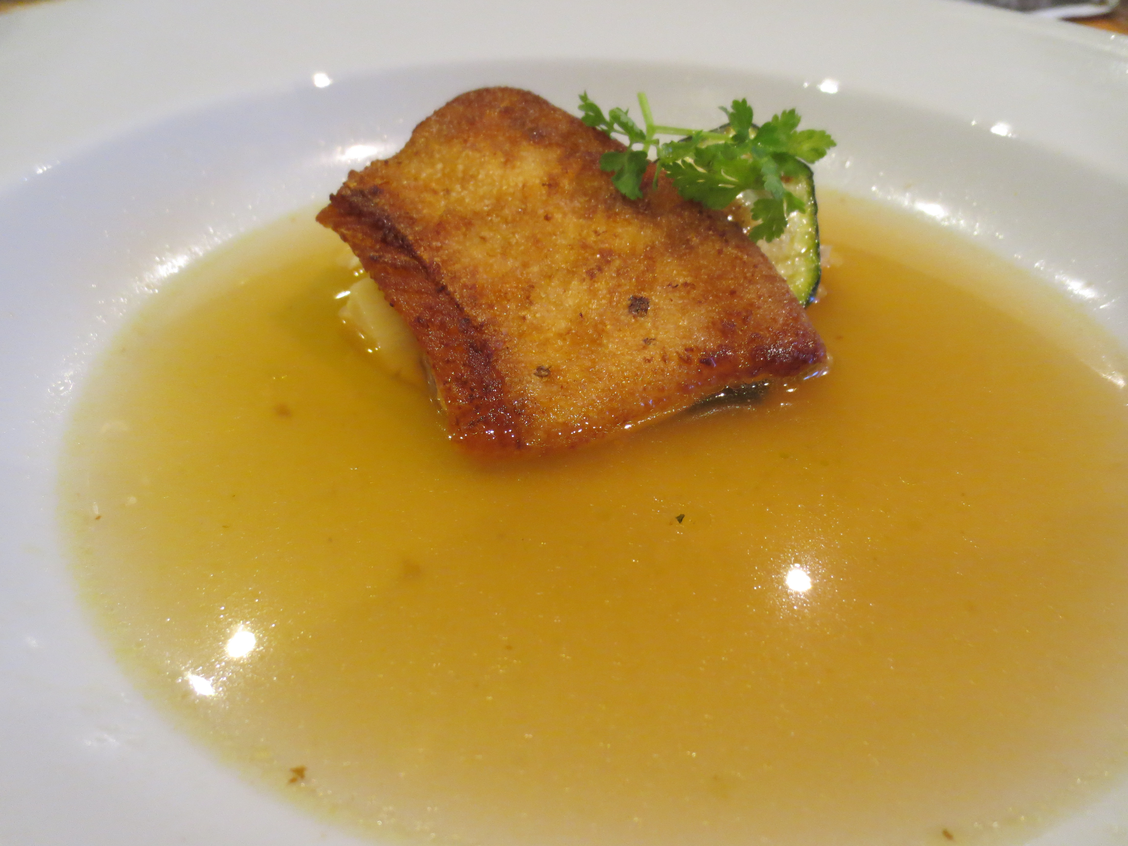 石巻産ハタガレイのスープ仕立て 季節の野菜の風味をのせて