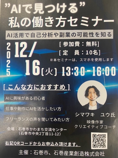 12/16創業機運醸成セミナー「”AIで見つける”私の働き方セミナー」のご案内