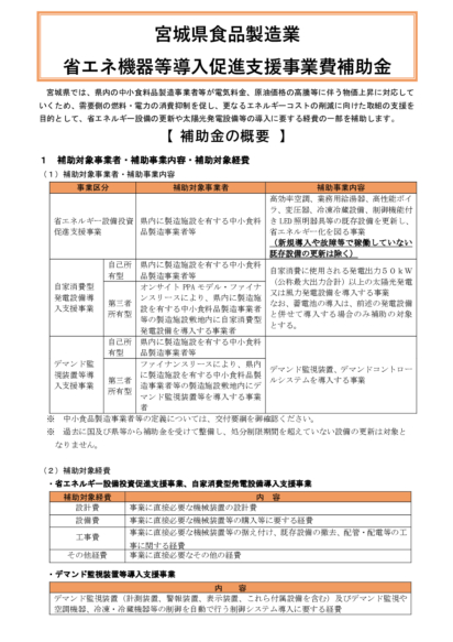 宮城県食品製造業省エネ機器等導入促進支援事業費補助金の募集について