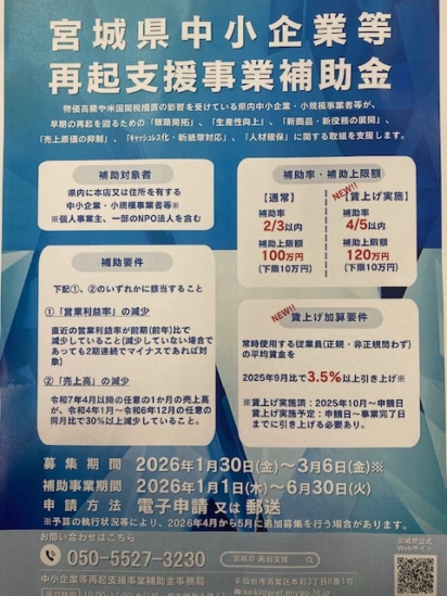 「宮城県中小企業等再起支援事業補助金」の募集について
