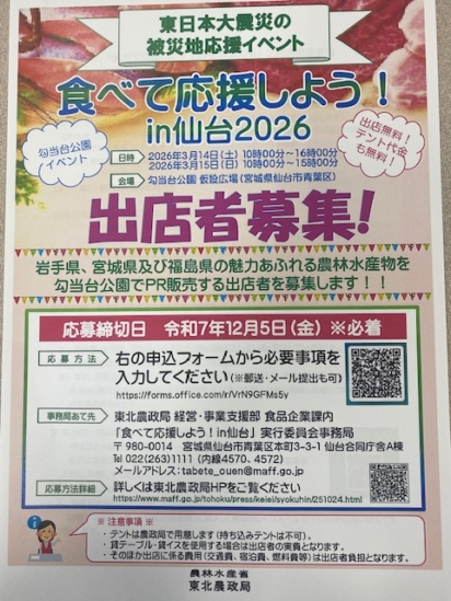 「食べて応援しよう!in仙台2026」出展者募集のご案内